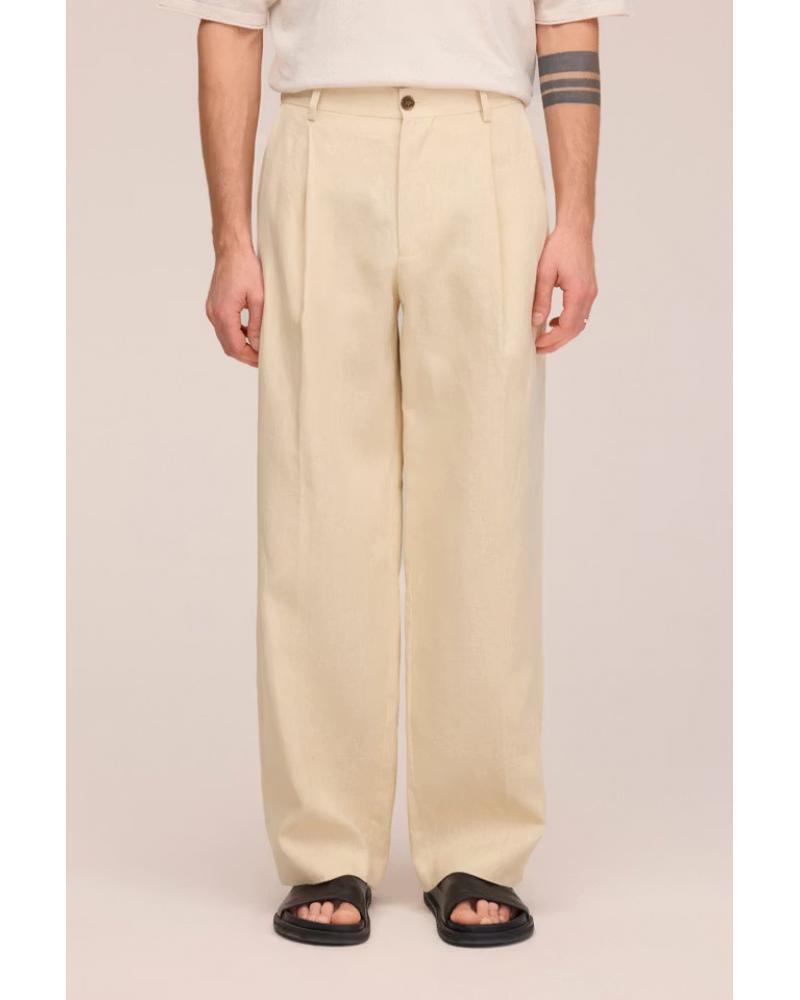 Blazer croisé à la coupe décontractée, confectionné en lin européen haut de gamme au toucher naturellement fluide. Il présente des poches plaquées classiques et un col inversé. Sa construction robuste préserve le drapé naturel du tissu tout en garantissant sa durabilité.